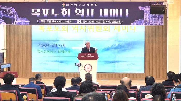 대한예수교장로회 목포노회(노회장 최용호 목사·지도봉리교회)는 지난 10월 27일 저녁 정명여자고등학교 김영순홀에서 ‘목포노회 역사세미나’를 열고, 지난 100여 년간 지역 교회와 선교, 교육, 신학교의 발자취를 되짚는 시간을 가졌다. 이날 행사에는 지역 교계 목회자와 평신도 지도자 등 100여 명이 참석해 신앙의 뿌리를 돌아보고 다음 세대 신앙 계승의 사명을 다짐했다.
