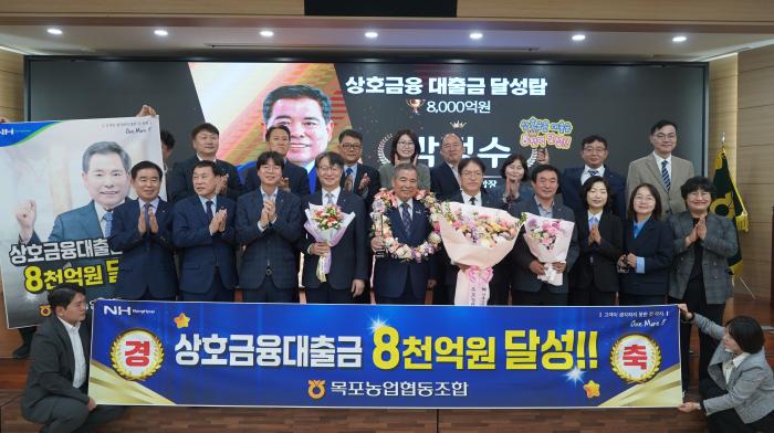 목포농협(조합장 박정수)이 상호금융대출금 8,000억 원을 돌파하며 ‘상호금융대출금 달성탑’을 수상했다. 이번 수상은 농협중앙회 전남지역본부에서 11월 4일 열린 시상식에서 이뤄졌으며, 목포농협은 2025년 9월 29일 기준 8,000억 원의 대출 실적을 기록해 성장성과 건전성을 동시에 인정받았다.