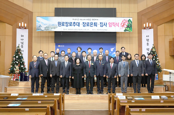 목포주안교회(담임 모상련 목사)는 지난 12월 27일(토) 오후 2시, 교회 본당에서 원로장로 추대와 장로 은퇴, 집사 임직식을 은혜 가운데 거행했다. 이날 예식에는 교회 성도들과 내빈들이 참석해 그동안 교회를 위해 헌신해 온 직분자들의 노고에 감사하며 새로운 사명을 맡은 이들을 축복했다.